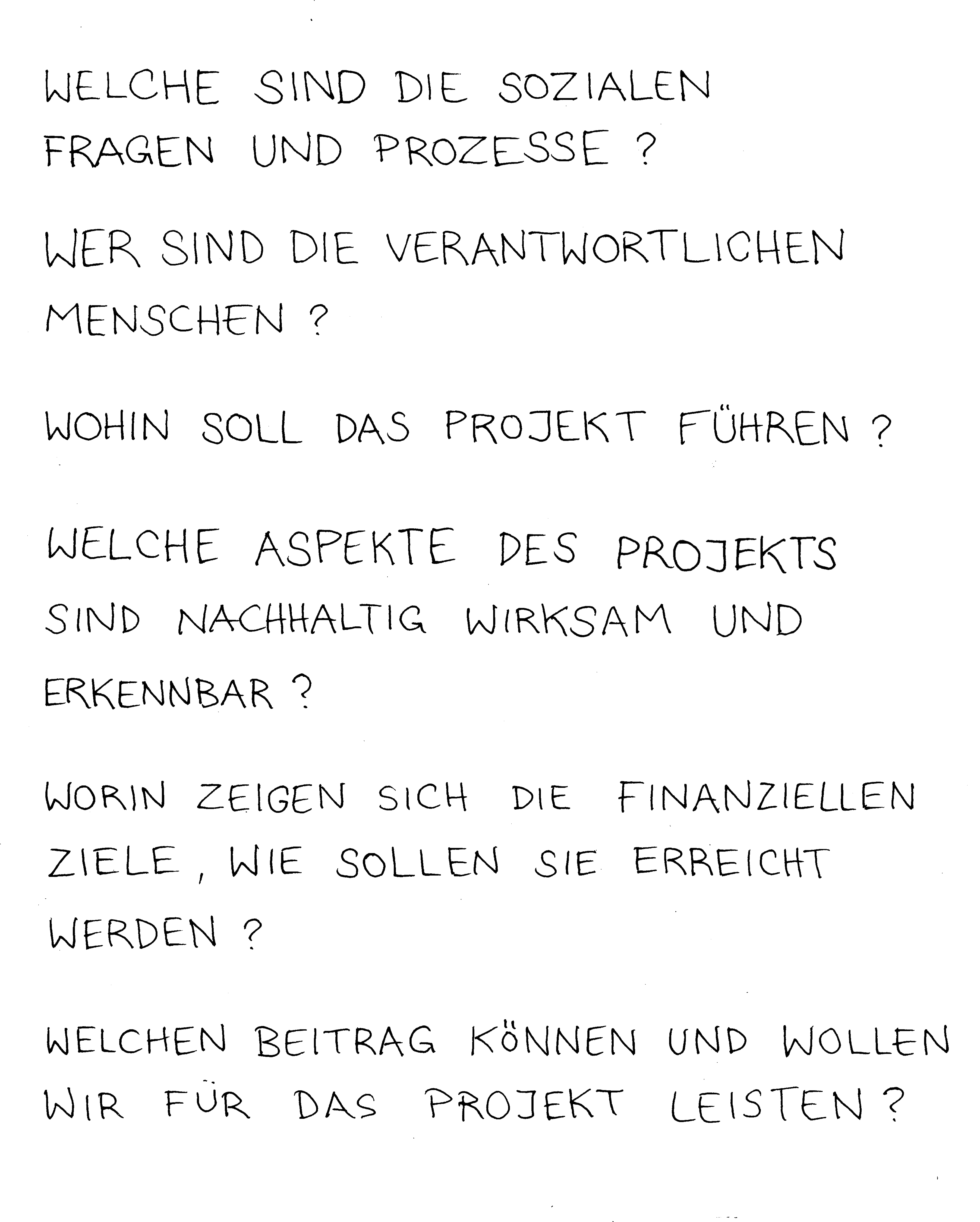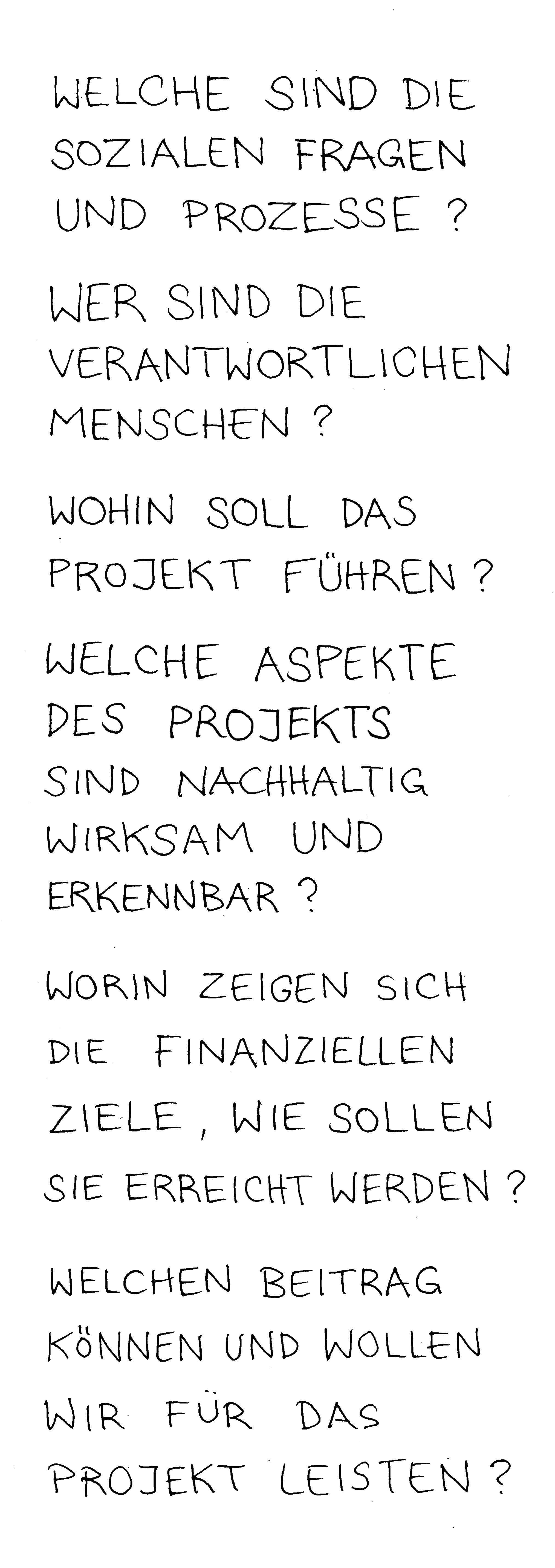 Beim Umsetzen vertrauen wir den verantwortlichen Personen, deren Initiativ- und Tatkraft. Theoretische und praktische Fähigkeiten, soziale Empathie und Phantasie setzen wir voraus. Auf die sozialen, geistigen und rechtlichen Prozesse, die mit der Entwicklung von Projekten und Arbeitsabläufen einhergehen, lassen wir uns mit Interesse ein. Das zwingt uns dazu, die konkreten Verhältnisse genau zu differenzieren und eine individuelle Lösung zu suchen.